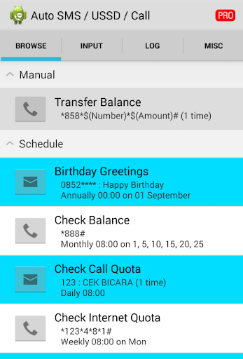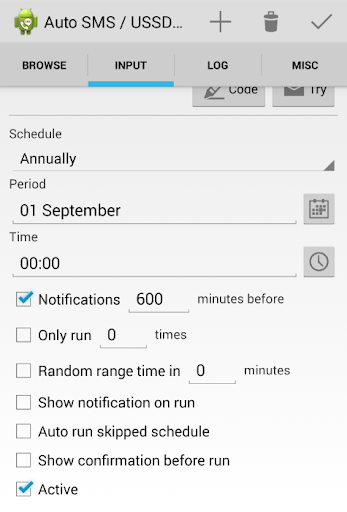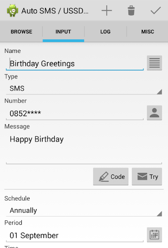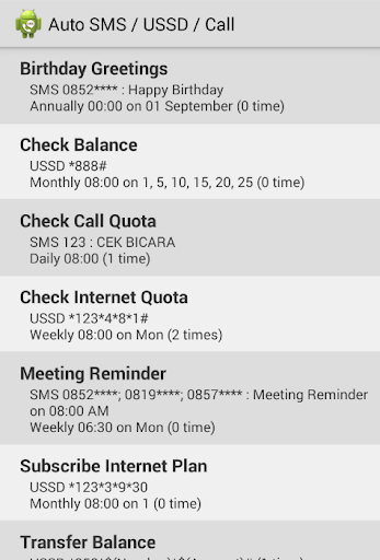 Envoyer automatiquement des SMS / USSD / Appel à l'horaire (quotidiennement, hebdomadaire, mensuel, chaque année, une fois, nombre de jours, après appel).