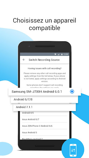 Certains appareils (tels que les appareils Xiaomi et Huawei) et les applications tierces empêchent Call Recorder de fonctionner, par conséquent, certains de vos appels ne seront pas enregistrés. Cela est dû au fait que le système nettoie automatiquement les processus d'arrière-plan et nous ne travaillons pas. Habituellement, vous devez ajouter l'enregistreur automatique d'appels dans leur «liste blanche». Veuillez fermer ou supprimer toutes les autres applications d'enregistrement. Le mode d'enregistrement disponible dépend du modèle d'appareil.
