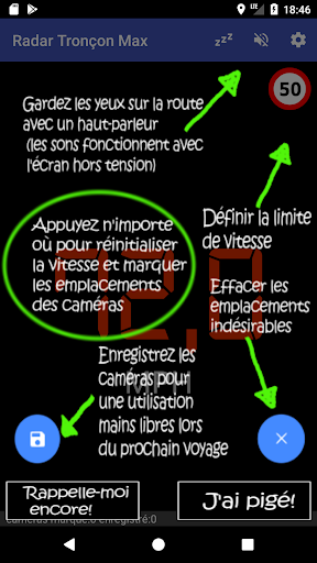 Enregistrez vos emplacements de caméras pour les déplacements réguliers - puis utilisez l'application mains libres! Votre vitesse moyenne se réinitialise lorsque vous passez vos emplacements de caméras enregistrés.