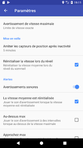 L'application va s'endormir et éteint le GPS pour économiser de la batterie si aucune réinitialisation de la vitesse ne se fait dans votre temps préréglé.