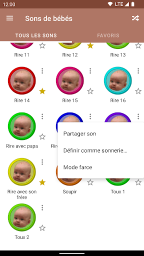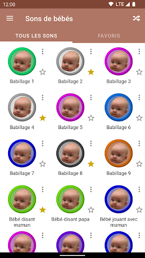 Sons de bébés contiennent plus de 70 sons bébé différents, vous pouvez les écouter à tout moment, sans connexion de données!