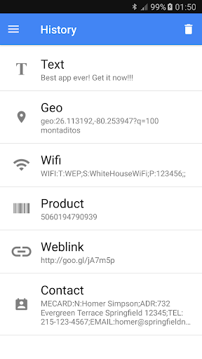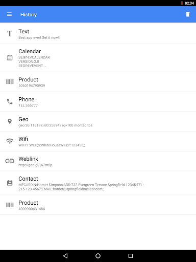 Barcode Scanner & QR Code Reader was designed to scan and read all barcode types including matrix barcode QR and all widely used types of QR such as text, url, contact, calendar, email, location, Wi-Fi, ISBN, UPC, EAN, product and many other formats. After scan user is provided with only the most relevant information for individual QR or Barcode type so user can take appropriate action. User can even use Barcode Scanner & QR Code Reader to scan coupons and coupon codes to receive discounts and save money on future purchases.