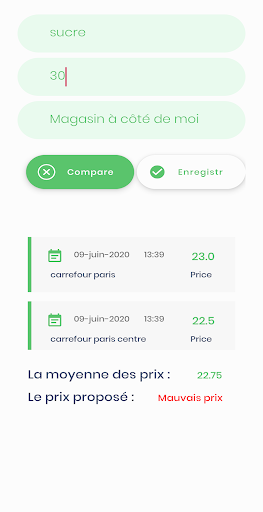 - Vous pouvez stocker et comparer les prix des mêmes produits, comment ? vous pouvez enregistrer le prix d'un produit donné dans le magasin A, puis lorsque vous allez dans le magasin B et que vous scannez à nouveau son code-barres, l'application comparera le prix proposé avec tous les prix répertoriés dans l'historique de votre produit. Ainsi, vous pouvez trouver le meilleur prix.