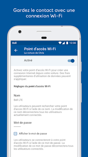 (2) Le service Wi-Fi utilise les données comprises dans votre forfait. Même lorsque le mode Wi-Fi est désactivé, le dispositif du service Voiture connectée de ZTE utilise un peu de données pour les services télématiques; lorsque vous quittez la couverture du réseau de Bell, toutes données utilisées, y compris celles pour les services