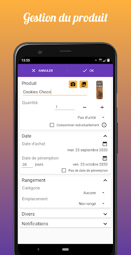 - Notifications pour vous rappeler les produits à manger avant expiration ou après ouverture