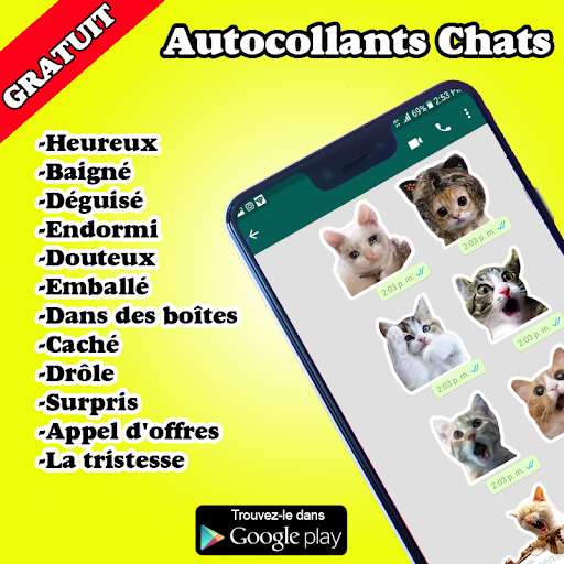 Ne doutez pas et téléchargez la meilleure application pour autocollants chat de cette année 2020 avec ces autocollants originaux prêts à être envoyés.