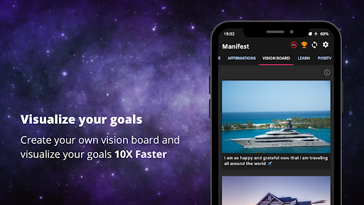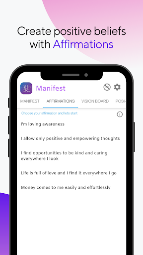 Utilisez la manifestation Journal application quotidiennement et manifeste la & # 39; loi de l'attraction & # 39;.Restez positif avec les meilleurs objectifs manifestes, les outils de manifestation tels que le conseil de vision et les affirmations quotidiennes, et la méditation de la loi de l'attraction.