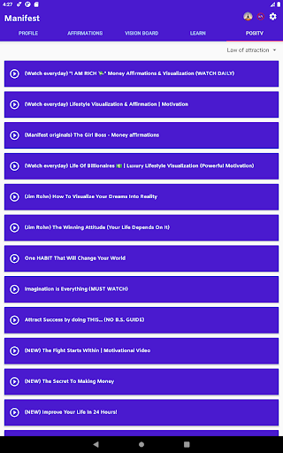 4.POSITV - Law of Attraction Library of Videos and Audio.Restez concentré avec une collection de la grande loi des vidéos d'attraction et de la visualisation guidée, attirez l'audio des affirmations d'argent et la loi des vidéos de méditation d'attraction