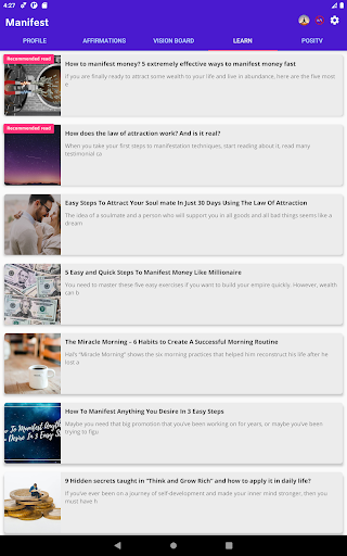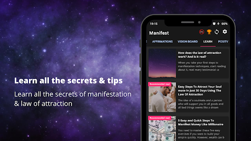 Maintenant, avec la meilleure application de loi d'attraction - manifeste que vous pouvez utiliser leapplication comme votre livre d'attraction et le journal de la loi de l'attraction pour se renseigner sur les conseils d'abondance et de vision, notamment: