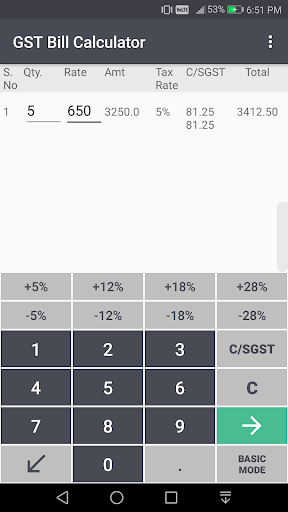 - Calculate GST on the complete bill in one go by long pressing any GST rate button.