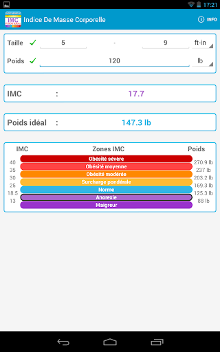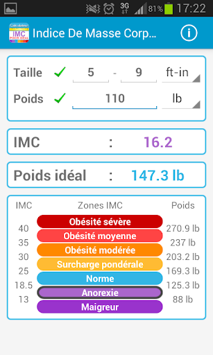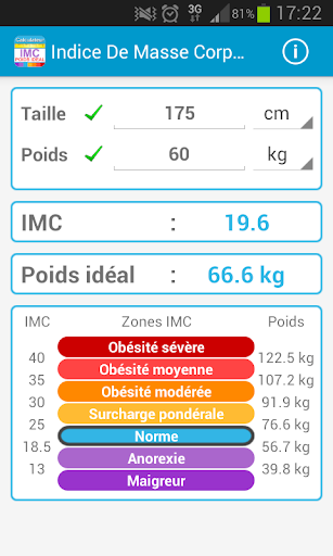 Mots clés : Indice de masse corporelle, IMC, poids idéal, IMC, IMG, Poids cible, Poids idéal, Poids idéale, TMB, BMR