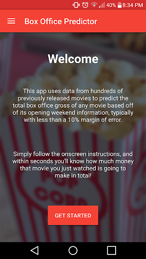 A lightweight and accurate app that will predict the box office total of any movie given its opening weekend gross, month of release, and genre. All this is wrapped in a neat, modern UI that’s incredibly easy to navigate and use.