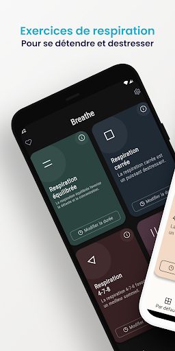 Breathe propose 3 exercices de respiration par défaut et vous permet de créer vos propres modèles de respiration personnalisés: