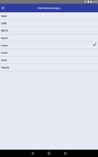 Cette APP vous fournira le menu suivant.