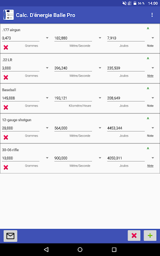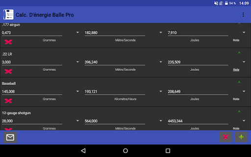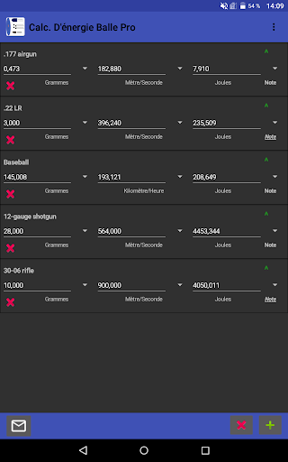 Cette application permet de calculer et de comparer facilement et rapidement l'énergie de plusieurs balles à différentes vitesses et valeurs de masse.