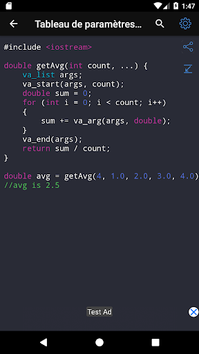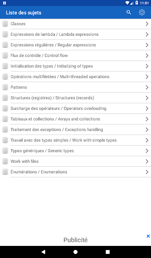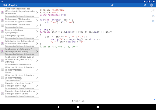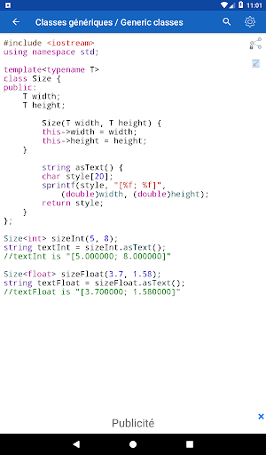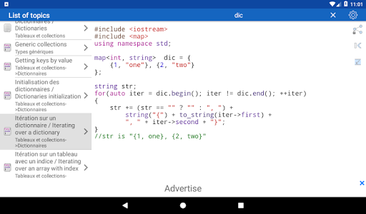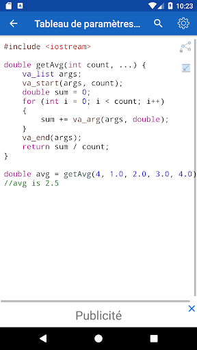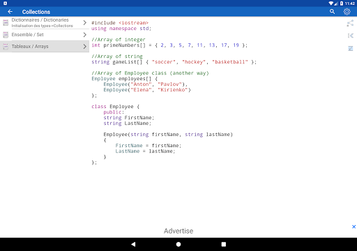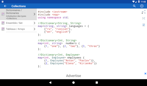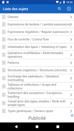 Apprendre la syntaxe du langage sur des exemples de code spécifiques. Comment obtenir une sous-chaîne ? Comment déclarer une méthode généralisée ? Ceux-ci et plus de 250 d'autres exemples de code pour С sont disponibles dans l'application.