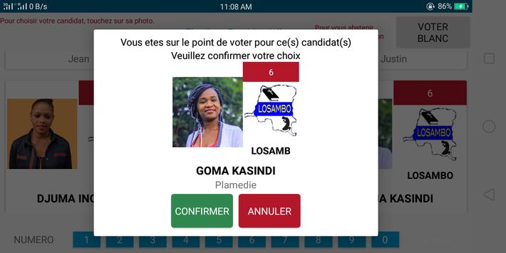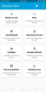 Application permettant à la CENI d'être en contact avec les électeurs et offrant une simulation de vote pour habituer ces derniers à l’utilisation de la machine à voter. On y trouve comme rubriques :