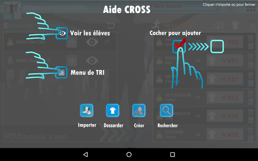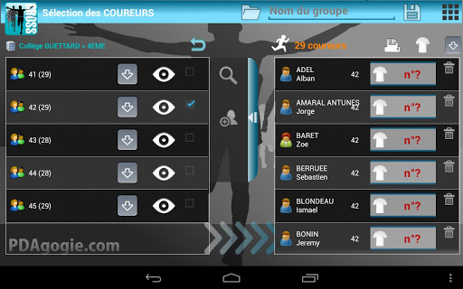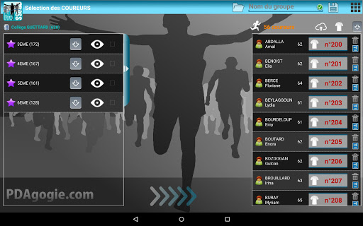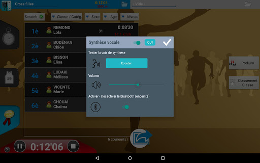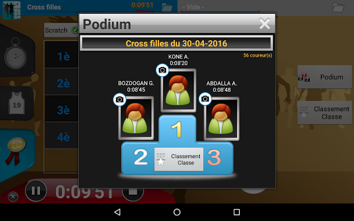 Nul besoin d'un PC, une seule tablette suffit pour gérer toutes vos courses : import, dossardage, chronométrage, tris des coureurs en temps réel (par catégorie, sexe, âge, mais aussi classe pour les scolaires), gestion des vitesses (pour comparaison avec une VMA), tout est géré !