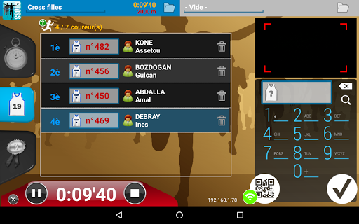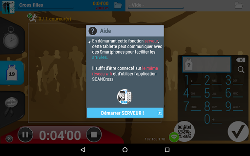 * Mode SERVEUR : cette application permet de gérer d'autres périphériques de saisies des arrivées (smartphones ou tablettes).