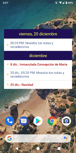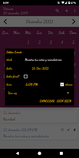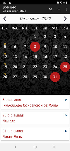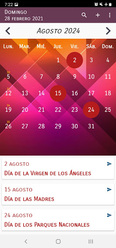 ✔ Añadir eventos: Puede añadir su propio evento en una fecha específica; el que aparecerá automáticamente en el calendario tanto de la aplicación y en el Widget.