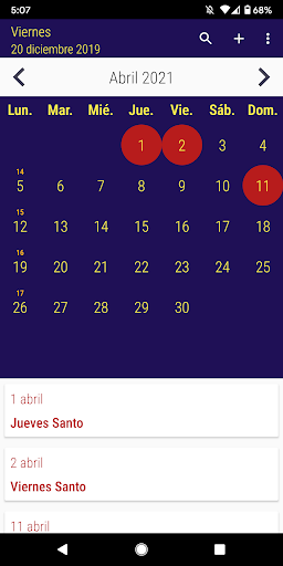✔ Aplicación intuitiva en donde se puede ir al mes anterior o siguiente simplemente deslizando el dedo en el calendario.
