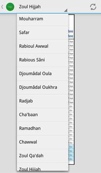 Mouharram, Safar, Rabioul Awwal, Rabious-Sâni, Djoumâdal Oula, Djoumâdal Oukhra, Radjab, Cha'baan, Ramadhân, Chawwal, Zoul Qa'dah, Zoul Hijjah.