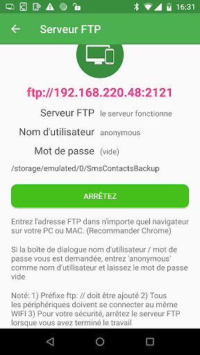 - Supporte le serveur FTP pour transférer des fichiers de sauvegarde