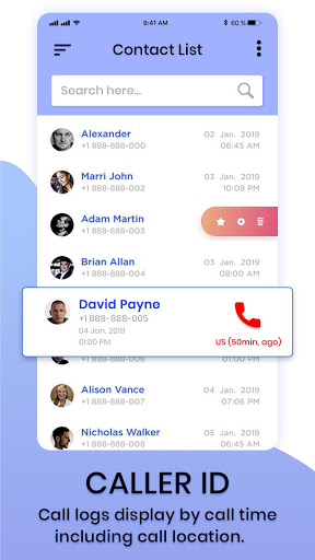 Caller Name and location Caller ID helps you to find Who the Caller Name ID, Who is calling me, Who called me, Call Search. Caller name ID app offers powerful phone call features for Bank Call, You can also find STD code, ISD code, Number Locator, Robocalls, Getcontact. Caller ID Name Address Location help you identify the true Dialer ID behind an unknown number, and avoid spam calls without wasting time.