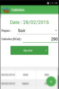 - Possibilité d'ajouter une quantité ou un poids en sélectionnant un aliment pour le calcul des calories absorbées