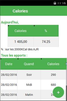 D'un coup d’œil sur la page principale, vous voyez la quantité de calories déjà apportées à votre organisme.