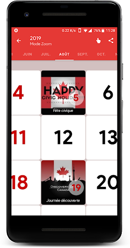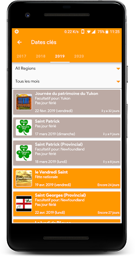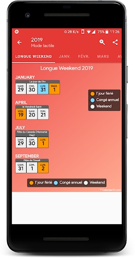 Calendrier des vacances au Canada