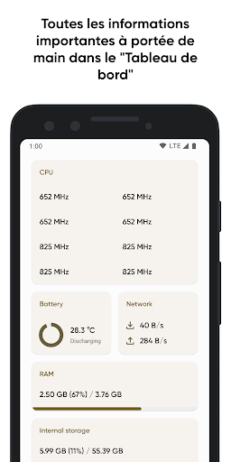 • Le widget personnalisable affiche des informations sur la batterie, le processeur et la mémoire directement sur votre écran d'accueil.