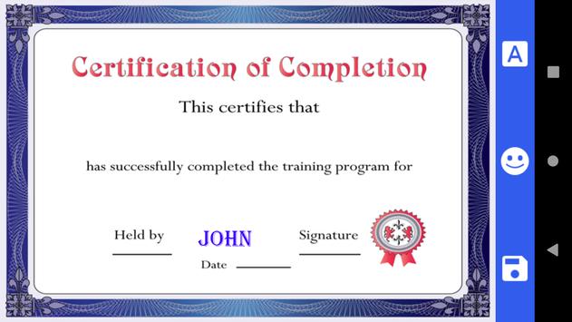 Créez un certificat professionnel avec l'interface facile à utiliser et simple. Ce créateur de certificats a la possibilité de mettre des autocollants sympas pour créer un certificat personnalisé unique. Il suffit de quelques étapes pour créer un certificat que vous pouvez enregistrer pour imprimer ou partager en ligne.