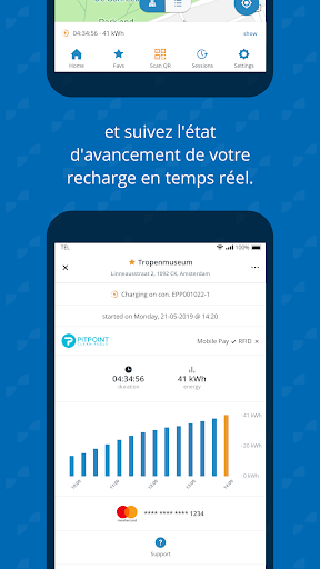 Rendez-vous simplement sur le chargeur de votre choix, commencez à recharger et payez automatiquement à la fin de votre session. Visualisez la disponibilité d'un chargeur, ses tarifs, le déroulement de votre session de charge et toute une gamme d'informations pertinentes en quelques clics seulement.