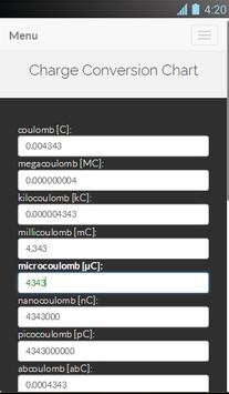 Charge Conversion Chart: coulomb, megacoulomb, kilocoulomb, millicoulomb, microcoulomb, nanocoulomb, picocoulomb, abcoulomb, EMU of charge, statcoulomb, etc.