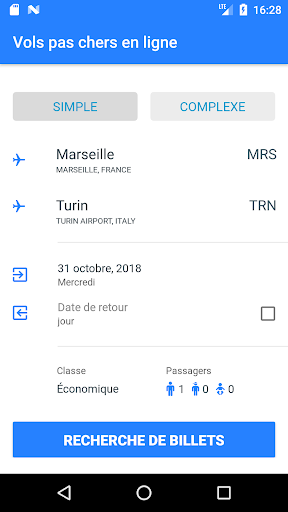 Grâce à une interface simple et intuitive, l'achat de billets bon marché n'est plus un problème. Lorsque vous démarrez l'application, vous verrez immédiatement une fenêtre dans laquelle vous indiquerez d'où vous venez et où vous allez.