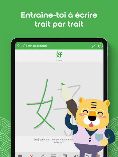 ● Tu apprendras à écrire: un système d'écriture avancé avec correction automatique te permettra d'apprendre facilement à écrire n'importe quel caractère chinois trait par trait.