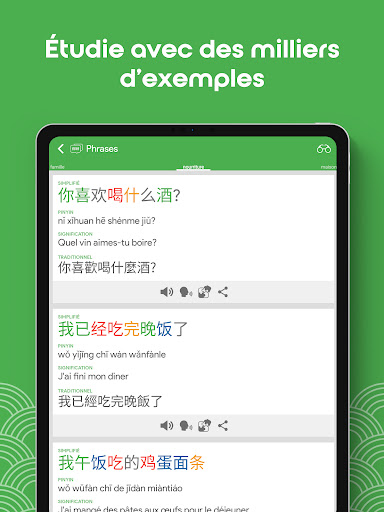 ● Tu pourras profiter de toute l'audio enregistrée par un professeur de langue maternelle chinoise.