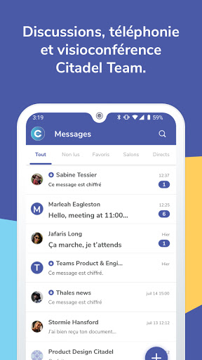 Grâce à Citadel Team, démarrez des appels, participez à des audio et visioconférences et envoyez des messages instantanément et sans frais, créez des groupes pour échanger avec tous vos collègues, partagez des documents, vidéos et photos de haute qualité en toute confidentialité.