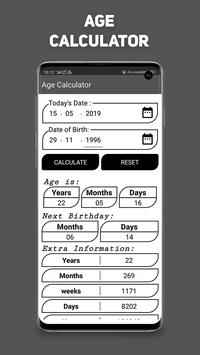 Age Calculator is one more best Feature of Calculator App Where you can calculate your Age in Year, Month, Weeks, days, Hours, Minutes and Second. Also you can show your Next Birthday by Days for Next 10 years With Days.