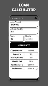 also has feature of Loan Calculator by which you can calculate Loan EMI, Loan amount, Loan interest rate, Loan period, Loan Installment Amount and Calculate EMI on monthly and Yearly basis..