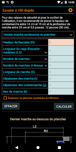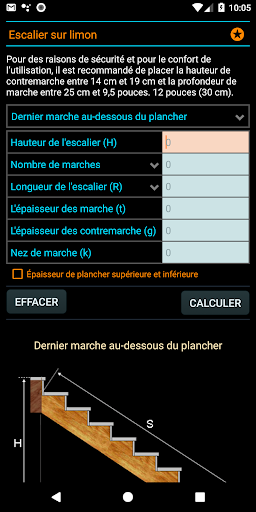 Idéal pour calculer et construire des escaliers en béton, des escaliers en bois, des escaliers en fer, des escaliers droits ou en tournant à 90 degrés et à 180 degrés.
