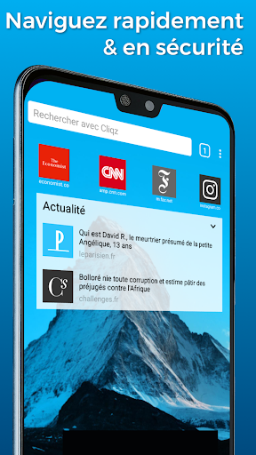 Cliqz est le premier navigateur avec recherche anonyme et technologie d'antitracking intelligente intégrées. Où que vous alliez sur Internet : Cliqz protège votre vie privée. Notre moteur de recherche maison, développé à Munich, vous permet d'économiser temps et volume de données : entrez simplement votre requête, sélectionnez une suggestion ou faites glisser vers la gauche pour plus de résultats. Au fait : Cliqz est gratuit et open-source.