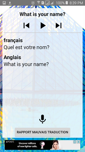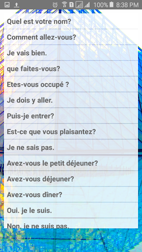 L'application contient 300 phrases les plus courantes. Améliorer votre écoute et l'expression orale. Appuyez sur le bouton du haut-parleur et de parler de la peine de vérifier la compétence de parler.
