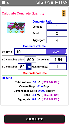 Nouveautés Concrete Calculator (Cement,Sand,Aggregate,Cost) 1.21