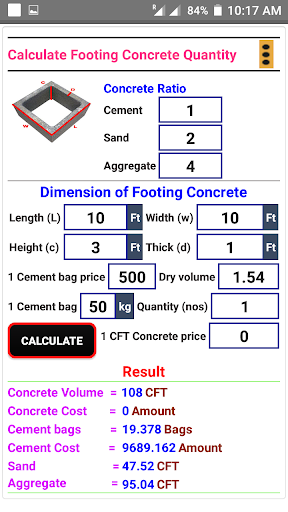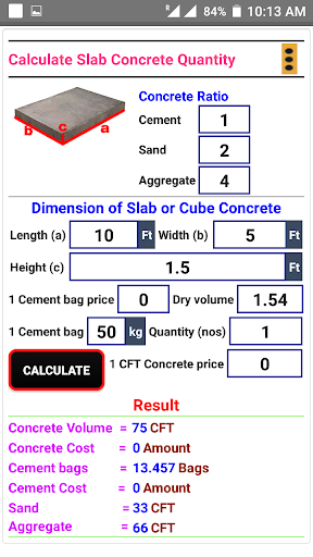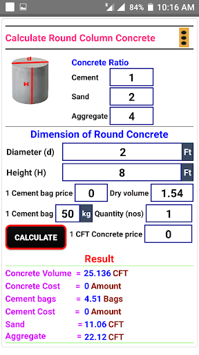 Concrete Calculator (Cement,Sand,Aggregate,Cost)