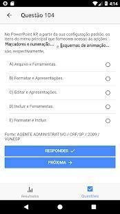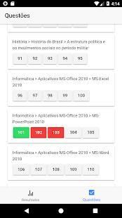 Verifique na tela principal a quantide de questões resolvidas e percentual de acerto.