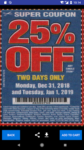 L'application n'est pas affiliée à la société Harbor Freight Tools.Tous les droits restent les propriétaires.Si vous avez des questions, veuillez nous contacter et nous allons prendre une action immédiatement dessus.