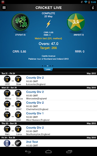 • Mises à jour du score en temps réel pour tous les matchs de cricket en direct.