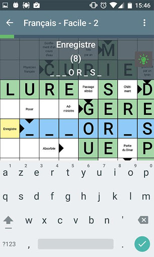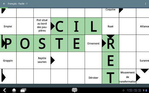 On peut zoomer sur les cases et leur remplissage à l'aide du clavier est un jeu d'enfant. Si un mot est faux, l'application Mots croisés te le fera savoir.